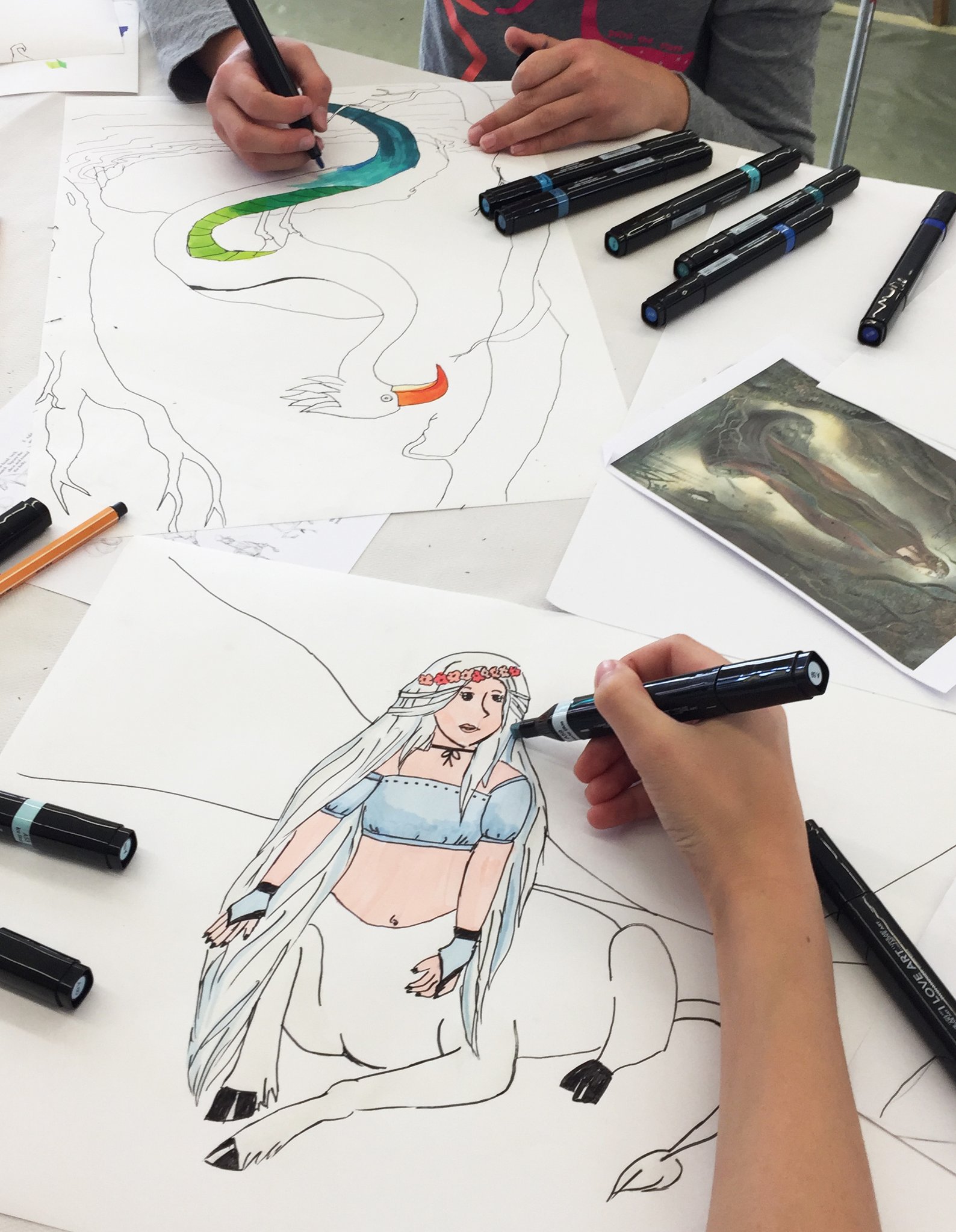 Ob Drache, Meerjungfrau, Fee, Einhorn oder dein eigenes Traumwesen: Wir «mixen» Menschen mit Tieren sowie Tiere mit Tieren, verwandeln diese in neue Wesen. Wir studieren deren Anatomie beim Zeichnen und Kolorieren.